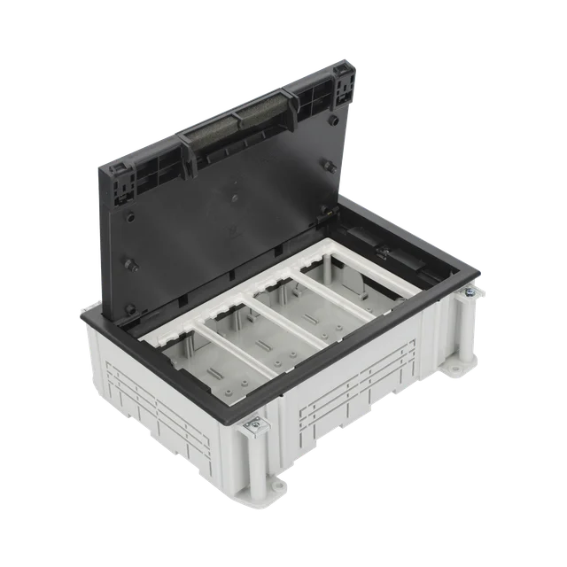 Caja Para Instalación en Piso Falso para Voz, Datos o Contactos Eléctricos / Capacidad para 4 Módulos / Espacio Embellecedor en la Tapa / Profundidad Ajustable de 90 a 120 mm / Los Módulos se Adquieren Aparte / (SF410/14CY)