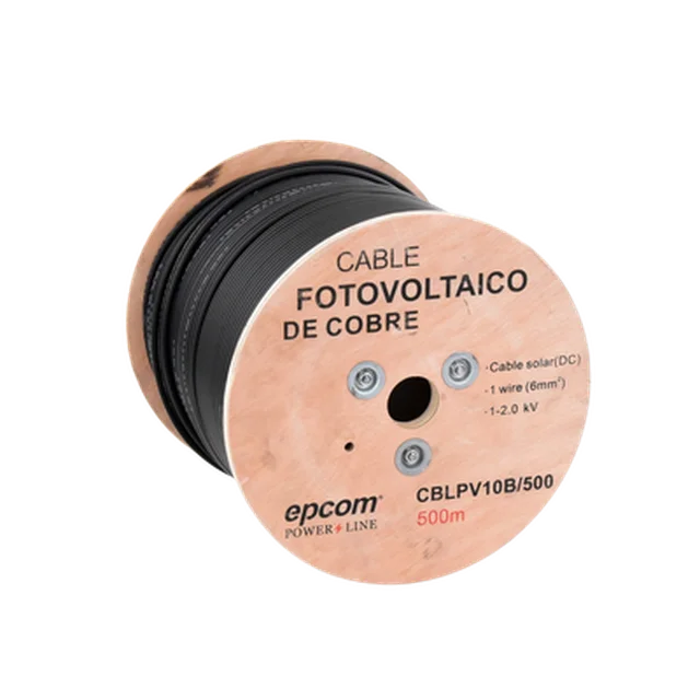 Carrete de 500 Metros / Cable Fotovoltaico Negro / 6mm² (10AWG) / Material COBRE / 2000 Vcc