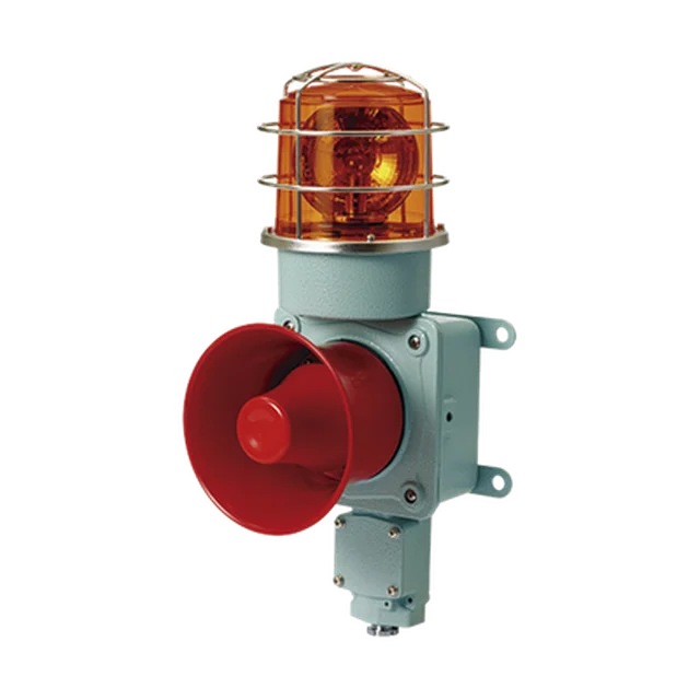 Combinación de luz de advertencia giratoria color Ámbar con bocina eléctrica para aplicaciones de la industria a 24 VCD, máx. 120 dB