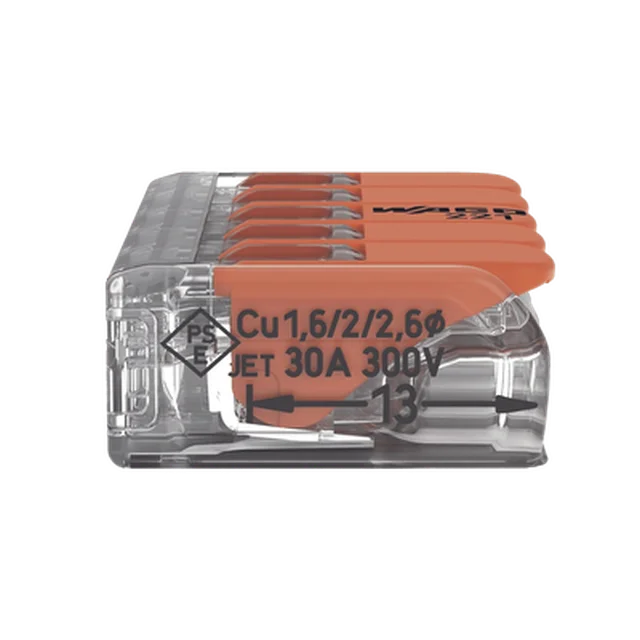 Conector de empalme compacto para todo tipo de conductores transparente para 5 conductores.