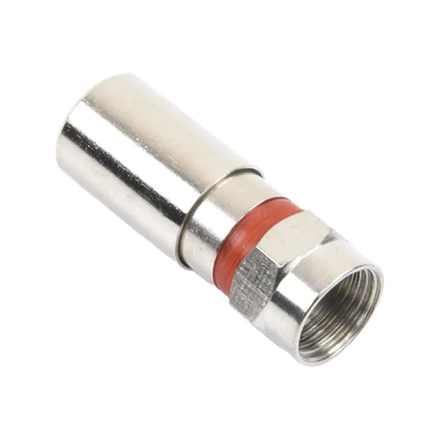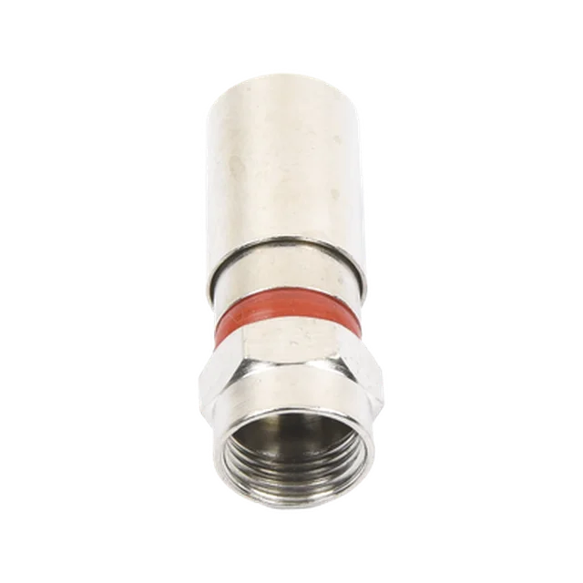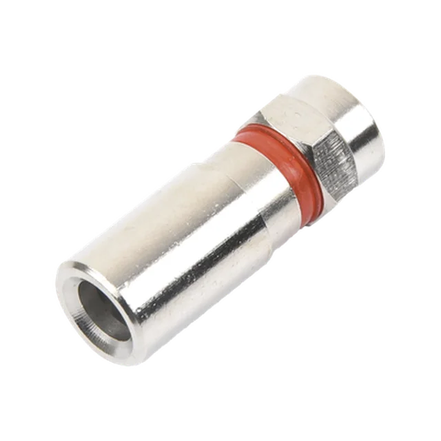 Conector F Macho de Compresión, Metálico para cable RG-59, Cuerpo de Bronce Niquelado.