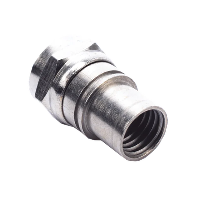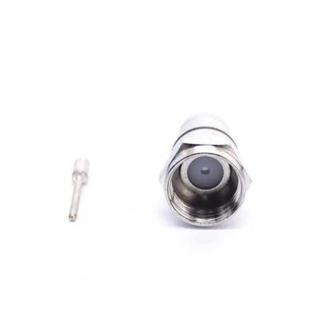 Conector F Macho Plegable, Con PIN para Cable RG-59, Cuerpo de Bronce Niquelado.