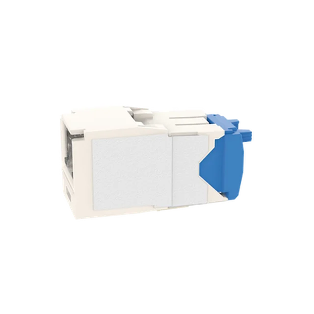 El módulo de conector UTP Categoría 6A/Clase EA de 8 posiciones, se termina en cable de 4 pares 22 – 26 AWG de par trenzado sin blindaje de 100 ohms y no requiere el uso de una herramienta de impacto. Los módulos de conector UTP usan un método de terminación de movimiento hacia adelante para optimizar el rendimiento al mantener la geometría del par de cables mientras se elimina el destrenzado del conductor. La tapa de terminación esta codificada por color blanco para designar el rendimiento de la Categoría 6A e incluye una etiqueta universal codificada para los esquemas de cableado T568A y T568B.