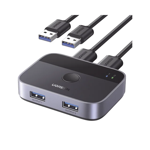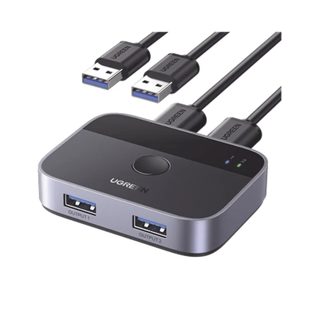 Conmutador USB para Compartir 2 Puertos USB 3.0 a 2 PC ́s | Cambio Mediante Botón | Incluye Dos Cables USB de 1.5 m | ABS | Permite que 2 Usuarios Compartan 2 Dispositivos Periféricos USB 3.0, como una impresora, un escáner, etc.