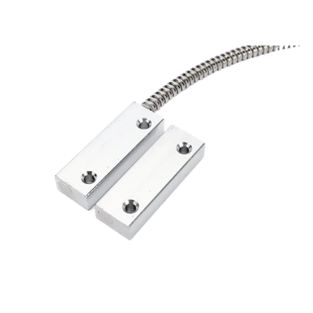El Sensor magnético para ventanas y puertas consta de un imán y un reedswitch (interruptor magnético). Este sensor funciona como un switch normalmente cerrado (mientras hay campo magnético). Cuando la puerta o ventana se abre, el circuito eléctrico también se abre y es posible detectar la apertura de la misma.