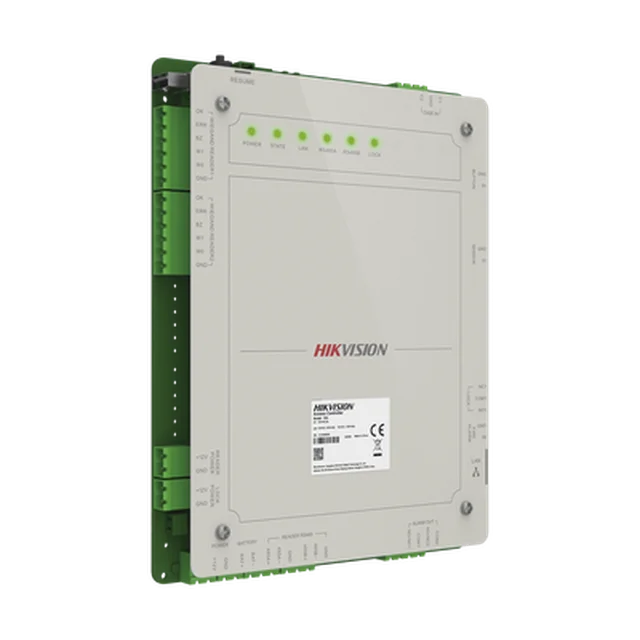 Controlador de Acceso 1 Puerta Administrable en la Nube con Hik-Connect Teams / Interfaz Web / 2 Lectores de Huella o Tarjeta / 100,000 Tarjetas / 10,000 Huellas / Incluye Gabinete y Fuente de Alimentación 12v 4A / Soporta Batería de Respald