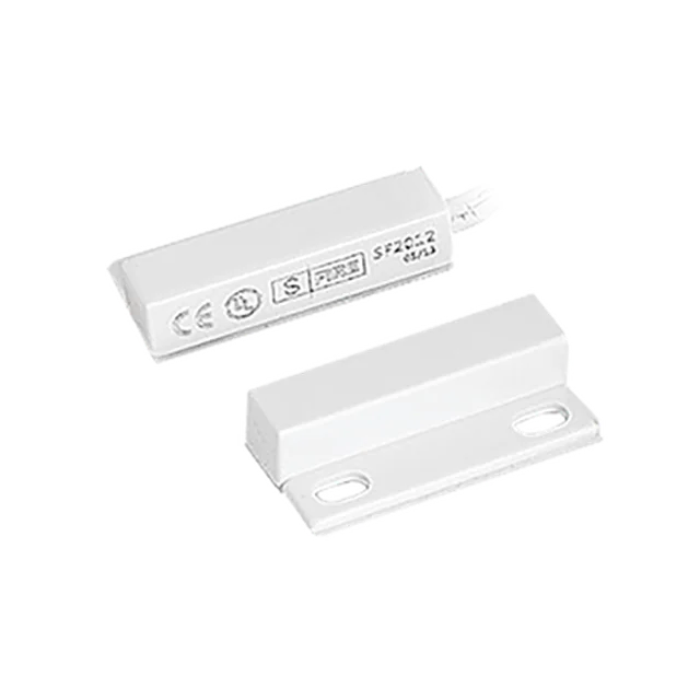 El Sensor magnético para ventanas y puertas consta de un imán y un reedswitch (interruptor magnético). Este sensor funciona como un switch normalmente cerrado (mientras hay campo magnético). Cuando la puerta o ventana se abre, el circuito eléctrico también se abre y es posible detectar la apertura de la misma.
