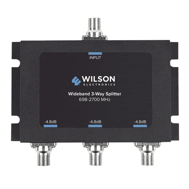 Divisor de potencia de 3 vías con conectores F hembra, 75 Ohm de impedancia, 4.8 dB de pérdida por puerto, 700-2700 MHz. Para uso en sistemas de distribución de señales para dividir la señal amplificada con la mínima pérdida de señal. Cantidades iguales de señales enviadas a múltiples antenas para áreas de tamaño similar.