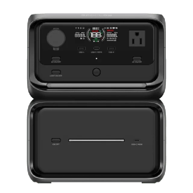 EcoFlow River 3 | Estación de Energía Portátil 858Wh Litio LFP / 2 AC 300 W (Max. 550W) / 1 USB-C 100W / 2 USB -A 12W / Cargador de Coche 8A a 12 o 24V / Conectividad WiFi y Bluetooth (App) / Carga Solar 110W Max.