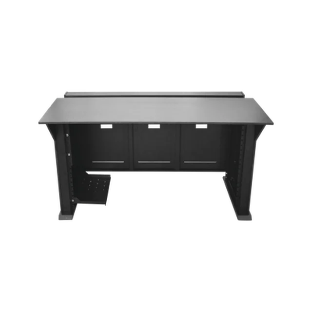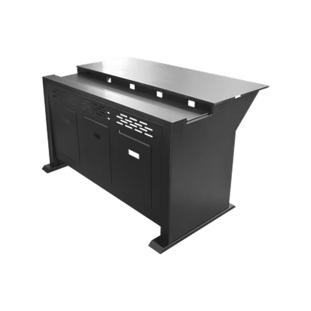 Escritorio Estación Mobiliaria Profesional de Monitoreo y Control / Videovigilancia / Acceso / Alarmas / Etc… / Metal Negro y Madera Tono Oscuro