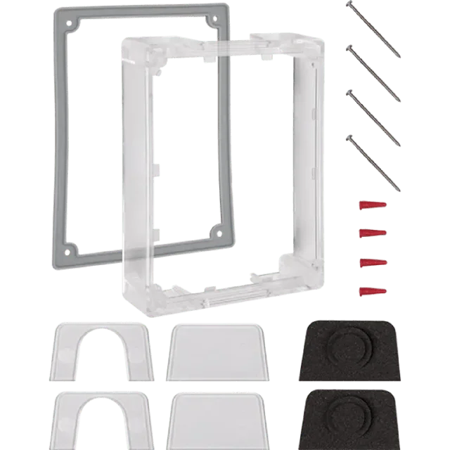 - Convierte una cubierta de montaje empotrado (flush) en una unidad de montaje en superficie (surface)
