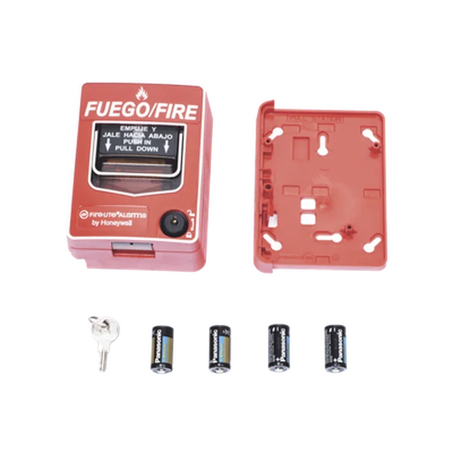 La estación de extracción inalámbrica direccionable W-BG12LX es una estación de emergencia manual de doble acción con una función de restablecimiento de bloqueo de teclas. Se proporcionan interruptores giratorios para configurar la dirección de la estación. La W-BG12LX está marcada solo en inglés (Fuego) mientras que la W-BG12LXSP está marcada en español e inglés (Fuego / Fuego). La W-BG12LX y la W-BG12LXSP se comunican con el panel de control de alarma contra incendios (FACP) a través de una red de malla inalámbrica mediante el enlace cableado W-GATE. Nota: Debe usarse con un FACP ES-200X, ES-50X, MS-9600 (UD) LS o MS-9200UDLS.