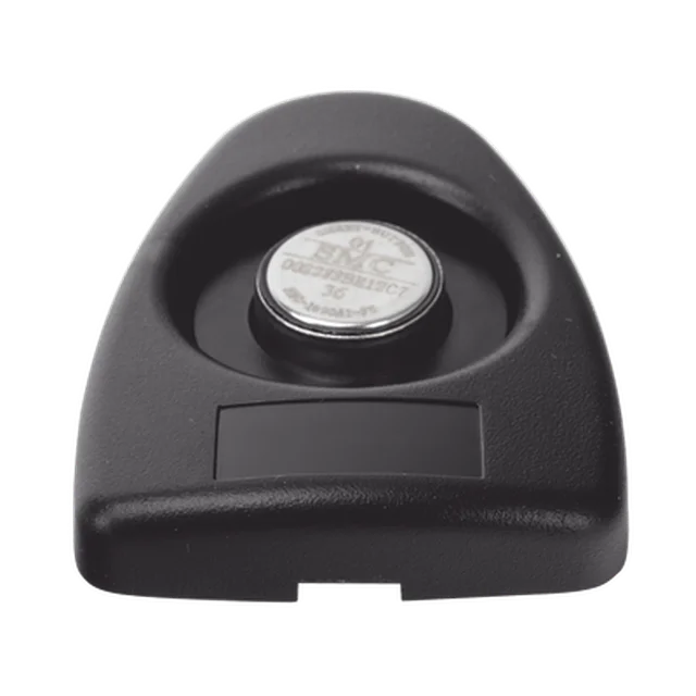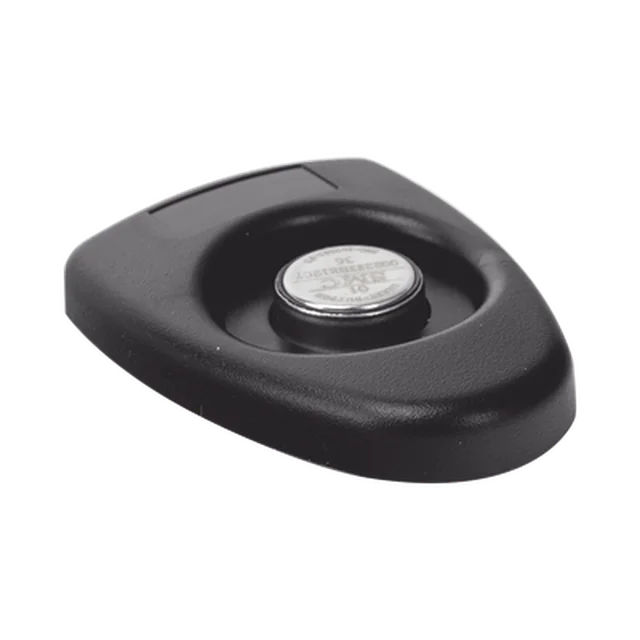 Encapsulado en plastico reforzado, contiene un ID CHIP en acero, de tamaño pequeño, para ser leido por el baston FC01 y registrar un número eléctronico para identificación.