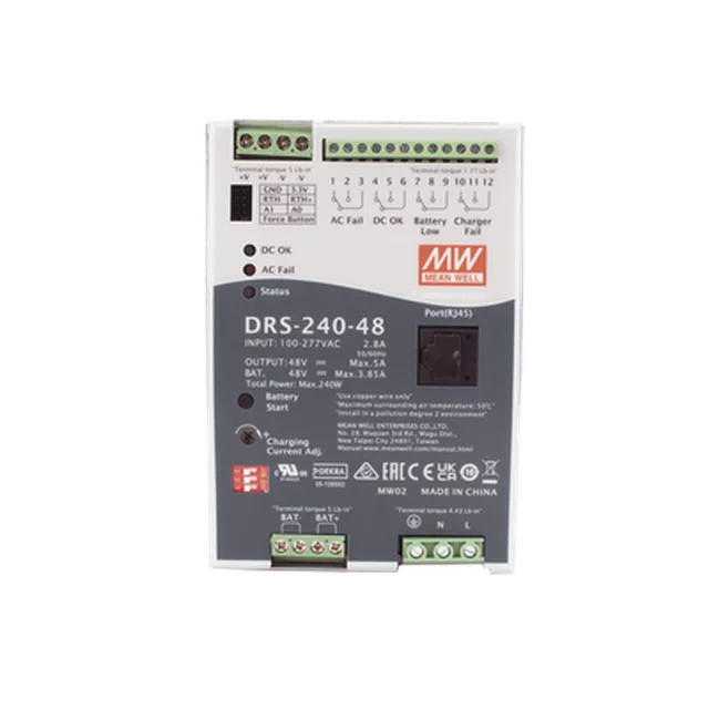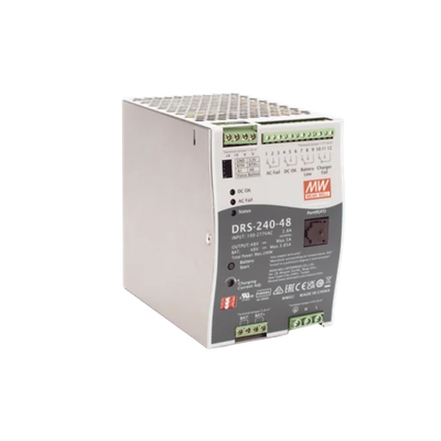 Fuente de Poder Industrial de 240W con Cargador de Baterías, salida 48Vcc, 5A, para montaje Riel Din