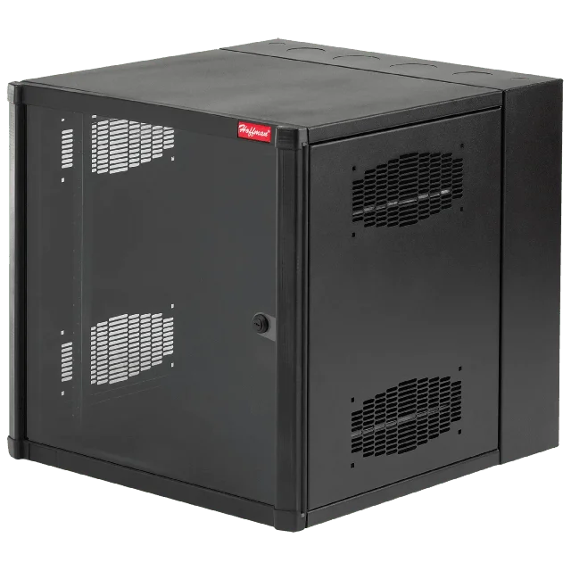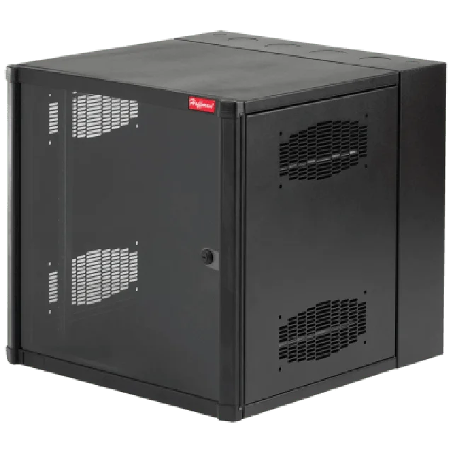 - Con doble bisagra para un fácil acceso al equipo; la sección central proporciona un montaje de rack de 19 pulg. con espaciado universal EIA y se accede a este a través de la puerta delantera o se gira la sección central de la sección de pared para acceso trasero.