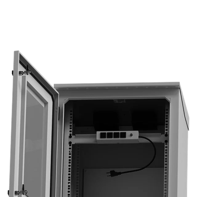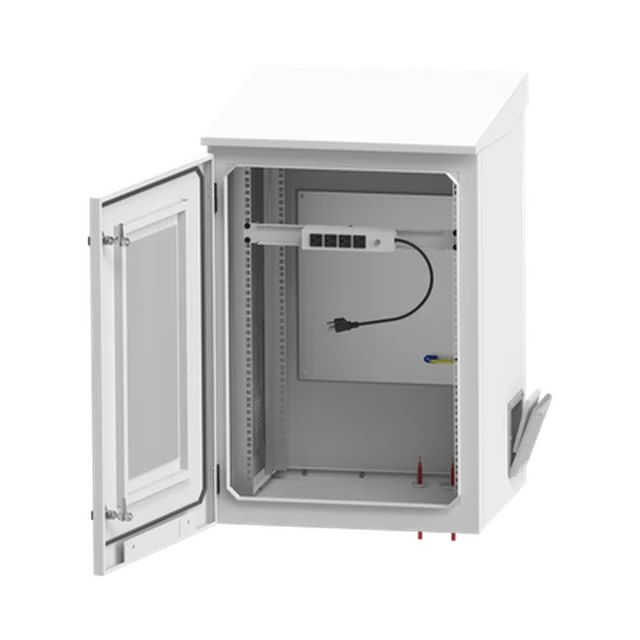 Gabinete de Exterior con Rack de 19″ de 16U con Ventiladores y Termostato, Se envía el Gabinete Armado. (Montaje a poste o torre se vende por separado).