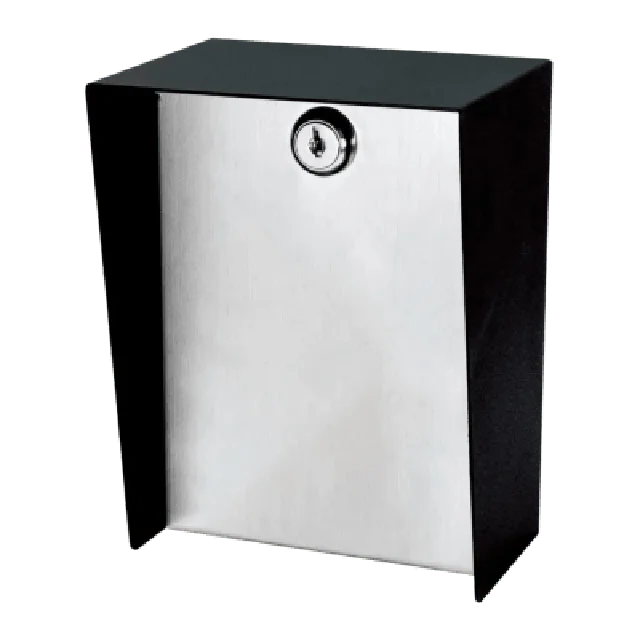 - Carcasa de acero resistente con pintura en polvo y placa frontal de acero inoxidable con cerradura de llave