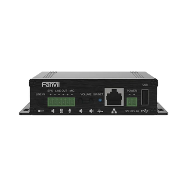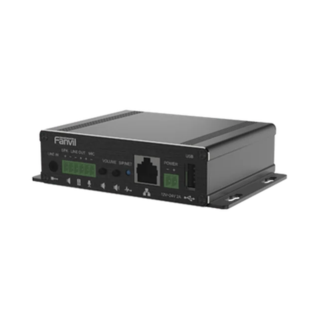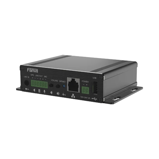 Fanvil PA3 es un dispositivo de sistema de anuncios públicos SIP para aplicaciones industriales. La transmisión del flujo de medios adopta los protocolos estándar IP/RTP/RTSP. Tiene varias funciones e interfaces, como intercomunicación, transmisión y grabación, para adaptar diferentes entornos de aplicación.