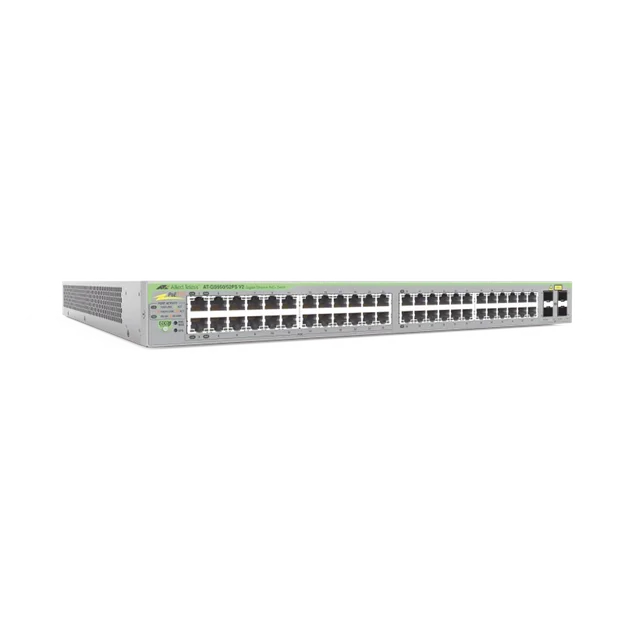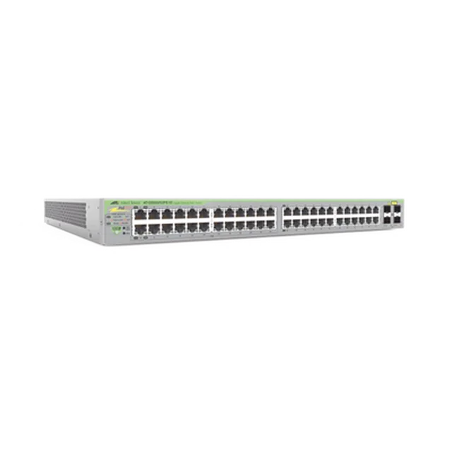 El conmutador Allied Telesis GS950/52PS V2 Gigabit PoE+ WebSmart cuenta con 48 puertos 10/100/1000T y cuatro puertos SFP, que ofrecen hasta 30 vatios por puerto (PoE+) para soportar cámaras de videovigilancia, puntos de acceso inalámbricos, teléfonos IP y otros puertos alimentados por PoE. dispositivos. PoE+ elimina la necesidad de cableado de alimentación separado y minimiza el desorden de fuentes de alimentación y adaptadores para una implementación simplificada.
