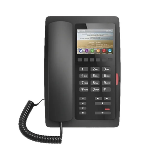 Fanvil H5 es una opción excelente y asequible para teléfonos IP de hotel, con una pantalla a color de 3,5 pulgadas y fácil de usar. El hotel podría personalizar la información (como la dirección del hotel, el logotipo, los números de teléfono relacionados, etc.) en la pantalla y brindar una mejor experiencia de vida a los huéspedes del hotel. El teléfono IP H5 esta diseñado para ambientar en los lugares más concurridos para hoteles como pueden ser los lobbys o bien, los mismos cuartos de huéspedes de las cadenas hoteleras o en moteles.