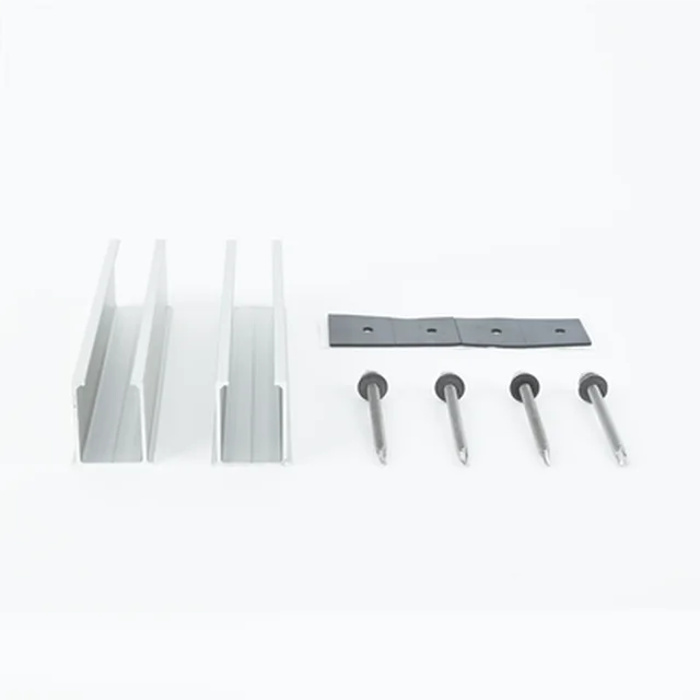 Juego de 2 Mini Rieles De Aluminio para Montaje de Módulos Solares en Techo (Instalación plana 0°). Incluye 4 Tornillos Perforantes.