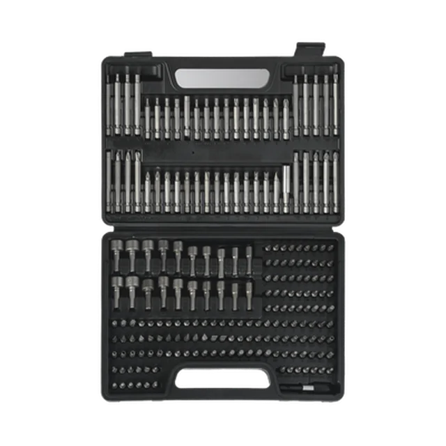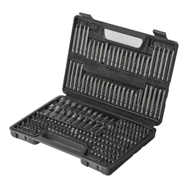 - Juego de 208 puntas de destornillador, incluye Phillips, plano ranurado, cuadrado, Pozi drive, llave de tuercas, Torq, Tri-wing, Torx star, cabeza hexagonal, Tamper proof Torx star, en una variedad de tamaños para una cobertura total.