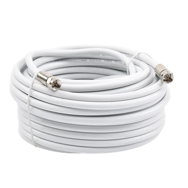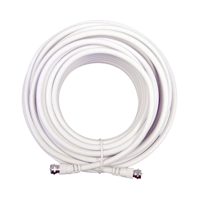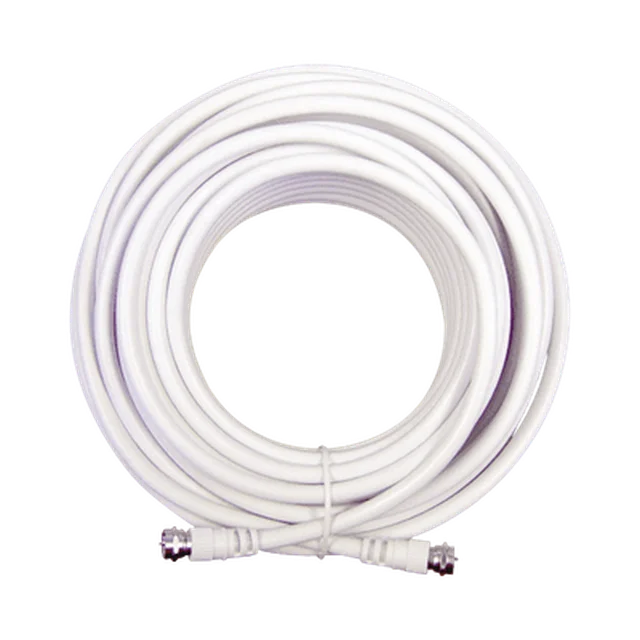 Jumper de cable coaxial tipo RG-6 en color blanco de 15.24 metros de longitud y conectores F macho en ambos extermos. Jumper de Wilson Electronics de muy baja pérdida para los amplificadores de 75 Ohm de impedancia.