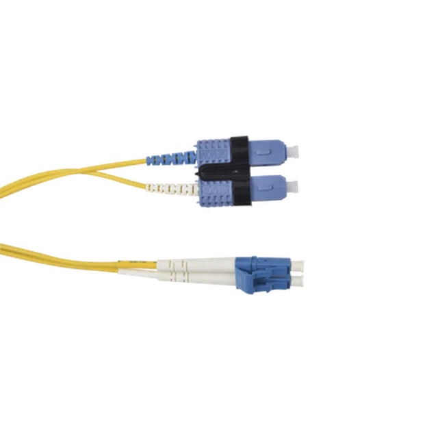 Jumper de Fibra Óptica Monomodo (OS2), XGLO, Riser, LC/UPC-SC/UPC Duplex, OFNR, Color Amarillo, 1 Metro