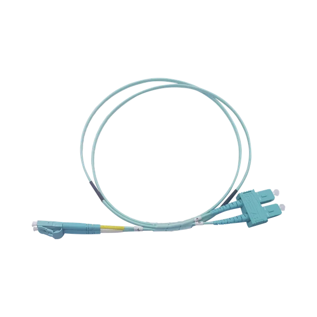 Jumper de Fibra Óptica Multimodo OM3 50/125 LC-SC OFNR (Riser), 2.0 mm, Dúplex, Aqua, 2 metros