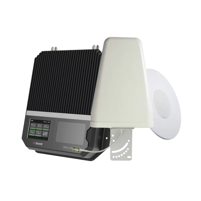 El Office 200 con antena exterior direccional de weBoost amplifica las señales débiles de celular para proporcionar una cobertura confiable de voz y datos, incluyendo 4G, dentro de los hogares y otros edificios donde las señales exteriores no llegan al interior. El Office 200 cuenta con un microprocesador de optimización automática y con un medidor de señal gráfico incorporado. La pantalla con indicador de nivel de señal Uplink y Downlink hace que sea fácil para el integrador o instalador determinar la dirección de la torre celular y la señal más fuerte disponible, lo que reduce considerablemente el tiempo de instalación.