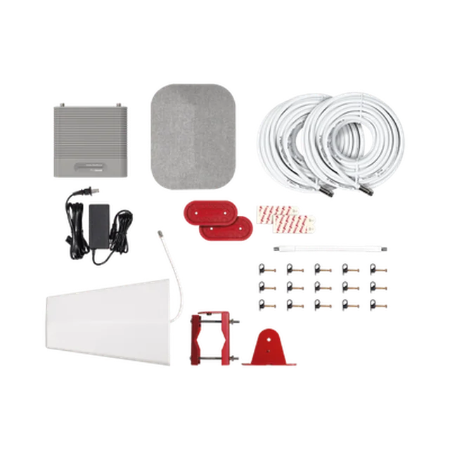 Cada amplificador viene con todo lo que necesita para una instalación completa, que incluye una antena interior, una antena exterior, cables coaxiales y una fuente de alimentación.