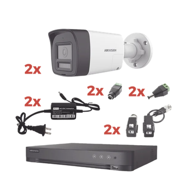Kit Audio Bidireccional TurboHD 1080p / DVR 4 Canales / 2 Cámaras Bala (Exterior) con Bocina y Microfóno Integrado / 2 Fuentes de Poder / Accesorios