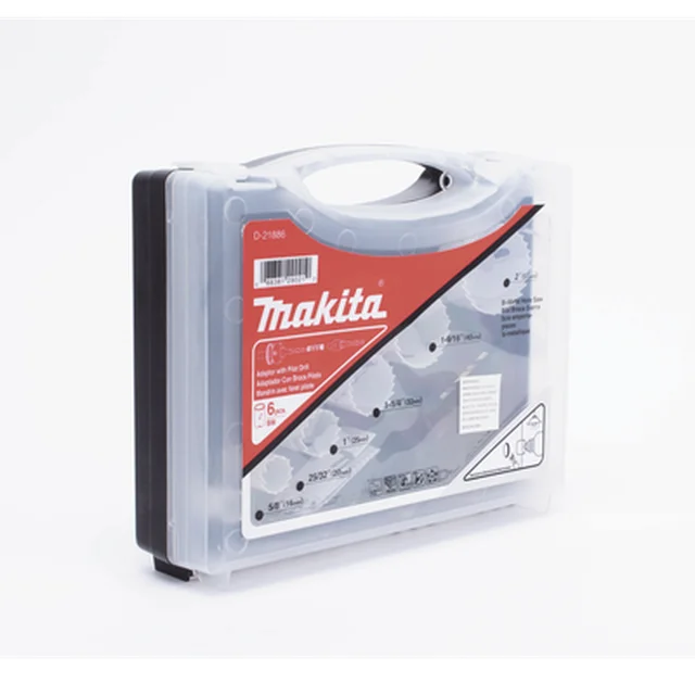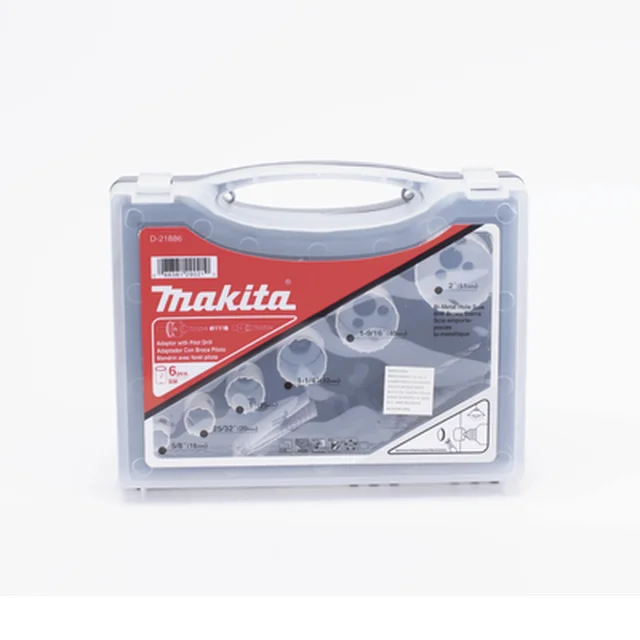 Kit de broca sierras (3/4 – 2 1/4 in) incluye 6 piezas de broca sierras, 2 adaptadores y resorte de expulsión.