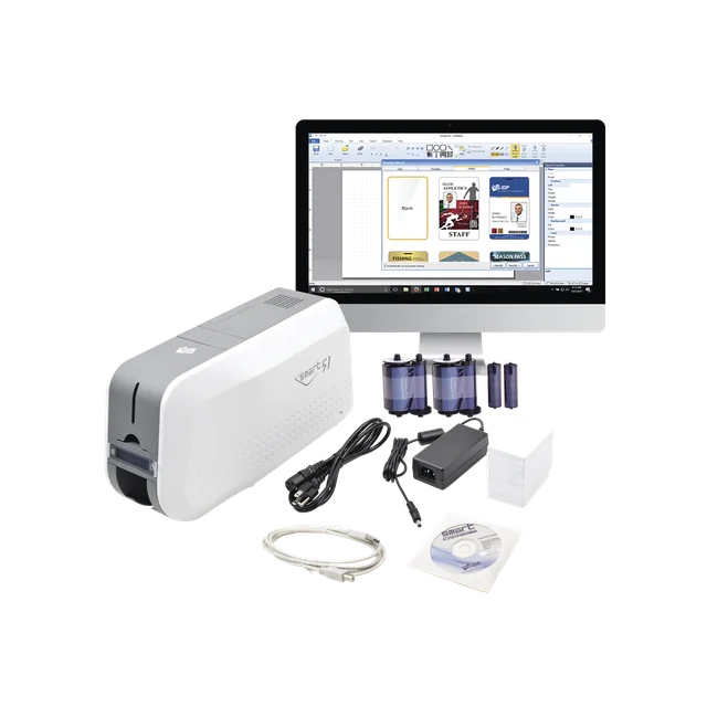 Kit de Impresora tarjetas de PVC / Puede Crecer a Laminador/ Una Cara / Incluye: 2 x Ribbon a Color, 100 Tarjetas PVC, Kit de Limpieza, Software