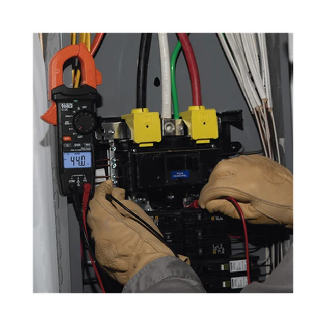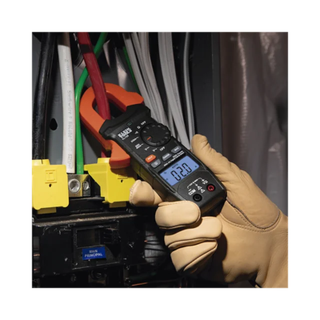 - Multímetro de gancho CL120 que mide corriente CA con las pinzas, así como voltaje CA/CD, resistencia y continuidad con cables de prueba