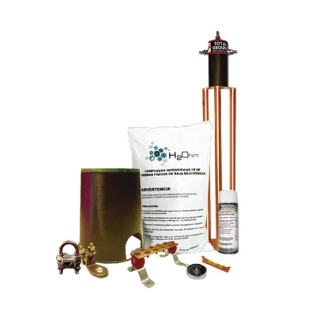 Kit de Tierra Física con Electrodo TG100AB y accesorios de instalación.