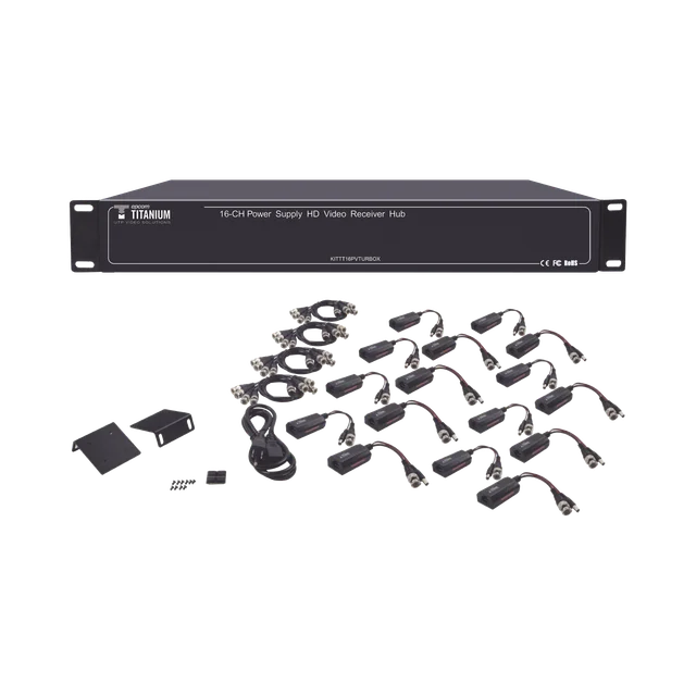 Kit de TRANSCEPTOR ACTIVO DE 16 Canales / VIDEO+PODER en un solo Cable UTP / 150m en 4K, 200m en 5 MP/ Envía 36 Vcc y recibe 12 Vcc / TODO INCLUIDO PARA RACK / Compatible con cámaras HD-TVI/CVI/AHD/CVBS / Instalación Limpia