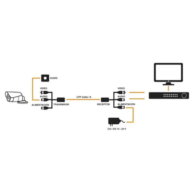 • Kit de transceptores activos, envía Alimentación, Video y Audio