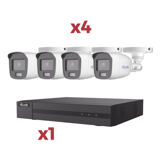 [Kit] DVR 4 Canales TurboHD + 1 Canal IP / 2 Megapixel (1080pLite) / AcuSense Lite / Audio por coaxitron / 1 Bahia de disco duro / 4 Cámaras 2 Megapixel tipo Bala / ColorVu Lite + Microfono Integrado