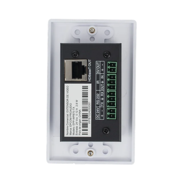 El transmisor de placa de pared HDBaseT puede transmitir vídeo de hasta 4K2K@60 (4:4:4) a través de un único cable CAT6/6a/7 hasta 130 pies/40 m o 1080p hasta 230 pies/70 m. Admite la funcionalidad Power over Cable (PoC) que permite una mayor flexibilidad en las instalaciones. También admite IR bidireccional y RS-232.