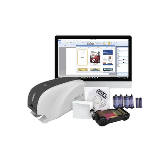 Kit Impresora de tarjetas PVC/ Una Cara /incluye: 2 x Ribbons, 100 Tarjetas PVC, Software, Kit Limpieza, Garantia 3 Años, Mascara de Seguridad UV