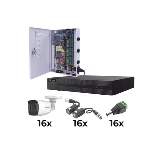KIT TurboHD 1080p / DVR 16 Canales / 16 Cámaras Bala Policarbonato con Microfono (exterior 2.8 mm) / Transceptores / Conectores / Fuente de Poder Profesional