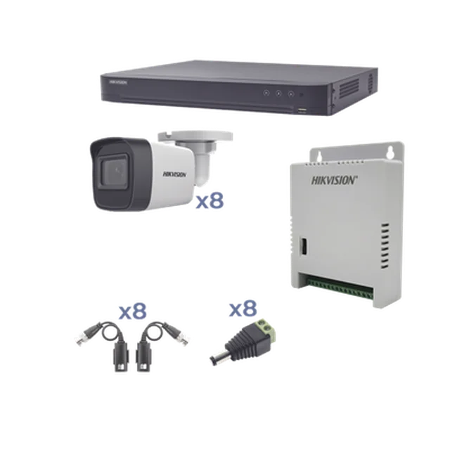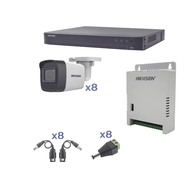 KIT TurboHD 1080p / DVR 8 Canales / 8 Cámaras Bala (exterior 2.8 mm) / Transceptores / Conectores / Fuente de Poder Profesional hasta 15 Vcc para Larga Distancia