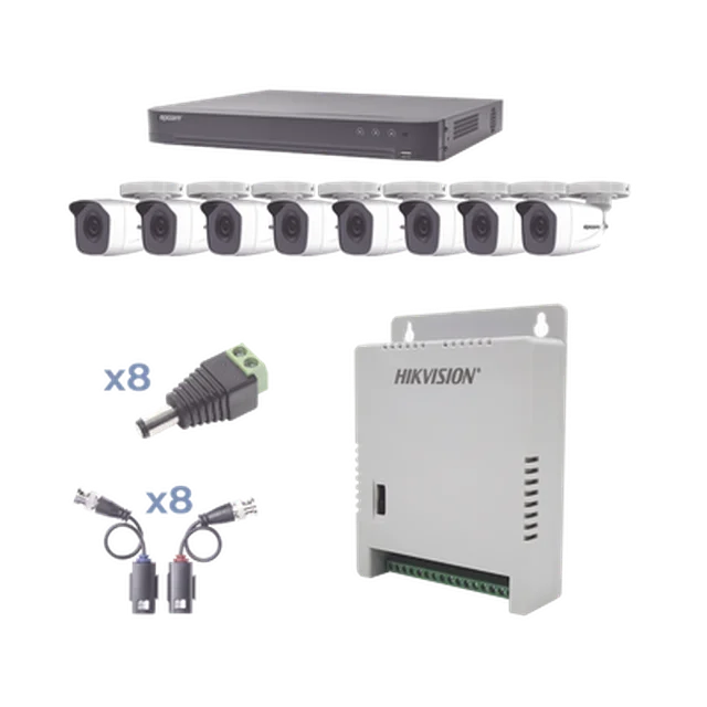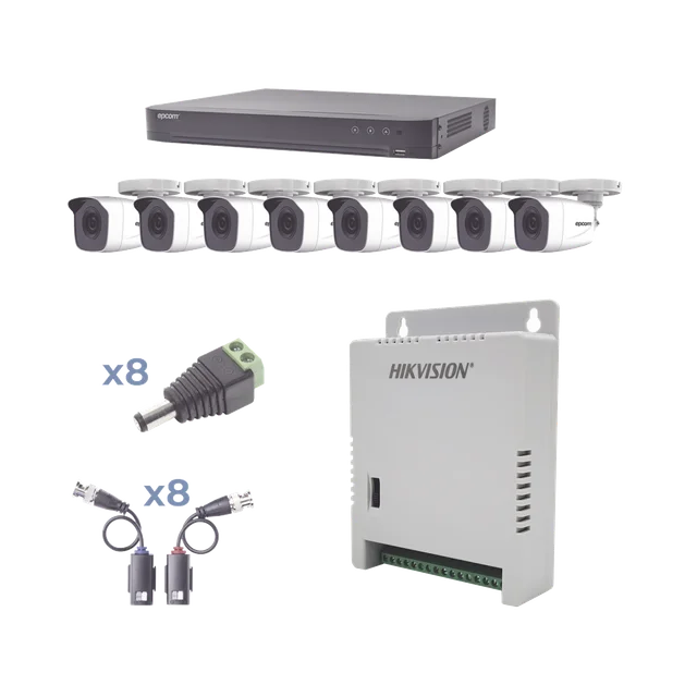 KIT TurboHD 1080p / DVR 8 Canales / 8 Cámaras Bala (exterior 2.8 mm) / Transceptores / Conectores / Fuente de Poder Profesional hasta 15 Vcc para Larga Distancias