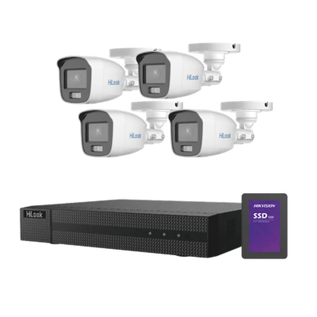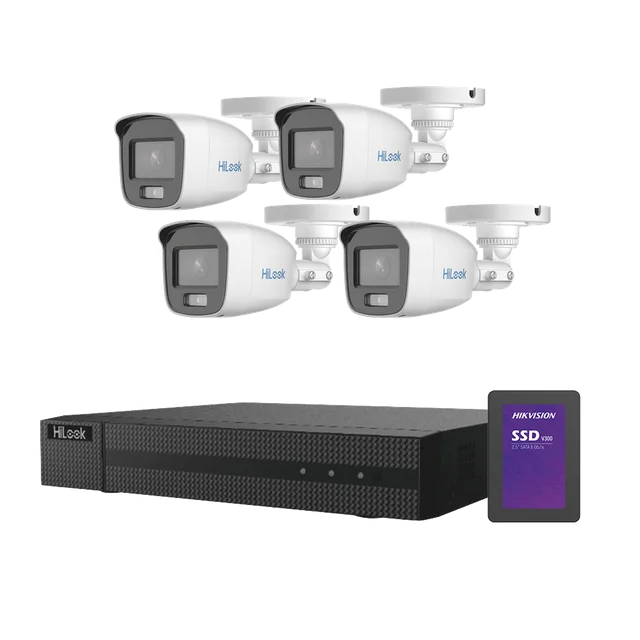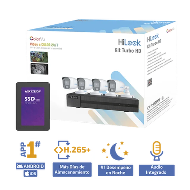 Kit TurboHD 1080p + SSD 500 GB / DVR 4 Canales / 4 Cámaras Bala ColorVu con Micrófono Integrado / Fuente de Poder / Accesorios de Instalación