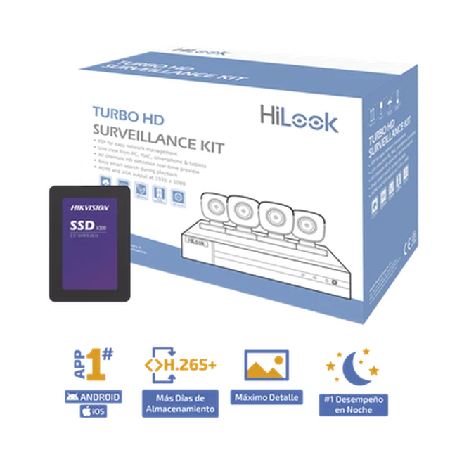 KIT TurboHD 1080p + SSD de 1 TB (1024 GB) / DVR 4 canales / 4 Cámaras Bala de Metal / Fuente de Poder / Accesorios de Instalación