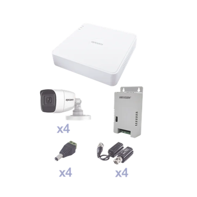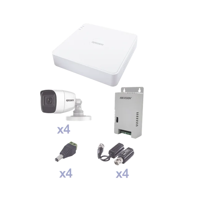 KIT TurboHD con Audio 1080p / DVR 4 Canales / 4 Cámaras Bala (exterior 2.8 mm) / Transceptores / Conectores / Fuente de Poder / AUDIO POR COAXITRON
