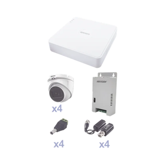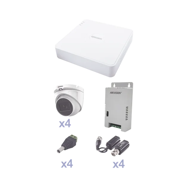 KIT TurboHD con Audio 1080p / DVR 4 Canales / 4 Cámaras Domo (exterior 2.8 mm) / Transceptores / Conectores / Fuente de Poder / AUDIO POR COAXITRON