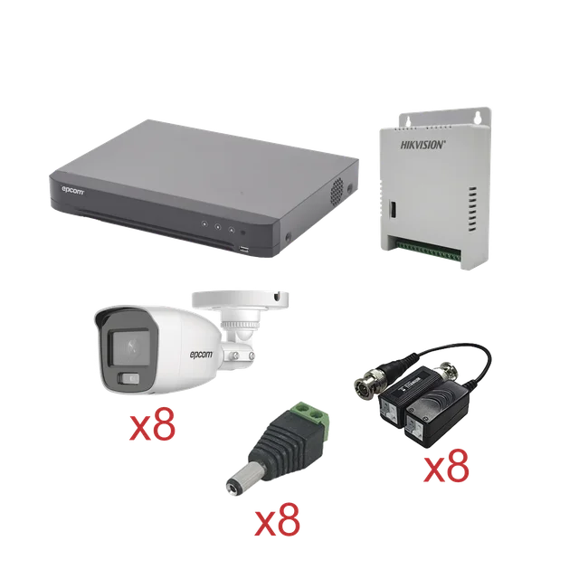 KIT TurboHD con Audio 1080p / DVR 8 Canales / 8 Cámaras Bala (exterior 2.8 mm) / Transceptores / Conectores / Fuente de Poder / AUDIO POR COAXITRON