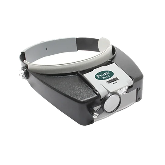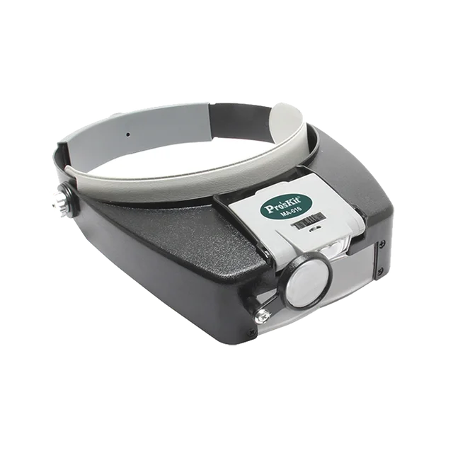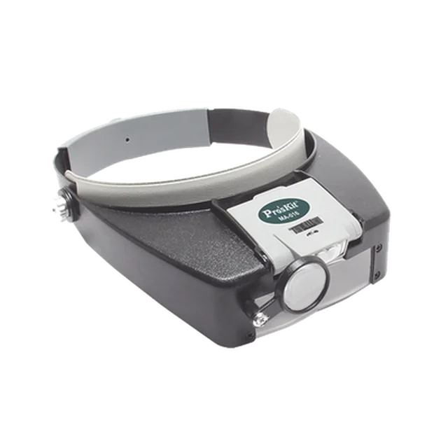 Lampara LED en correa frontal con lentes de aumento para laboratorio.